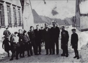 - ↑ Bundesarchiv, RH49/55: Kommandant M.-Stammlager XII F, Kommandanturbefehl Nr. 43, Forbach, 5.11.1943, S. 5 [URL: https://invenio.bundesarchiv.de/invenio/direktlink/7eb3924f-4081-46d0-a02d-da39d5267ecd/, zuletzt abgerufen am 2.06.2025]; Bundesarchiv, RH49/55: Kommandant M.-Stammlager XII F, Kommandanturbefehl Nr. 45, Forbach, 3.12.1943, S. 2 [URL: https://invenio.bundesarchiv.de/invenio/direktlink/7eb3924f-4081-46d0-a02d-da39d5267ecd/, zuletzt abgerufen am 2.06.2025]; Verein für Heimat- und Brauchtumspflege Geiselberg e.V., Fotodokumentation der Ortsgemeinde Geiselberg: Innenhof des Gasthauses Jochum Erna im Kriegsjahr 1942 Französische Kriegsgefangene mit Wachmann (Dank an Georg Spieß, Geiselberg).